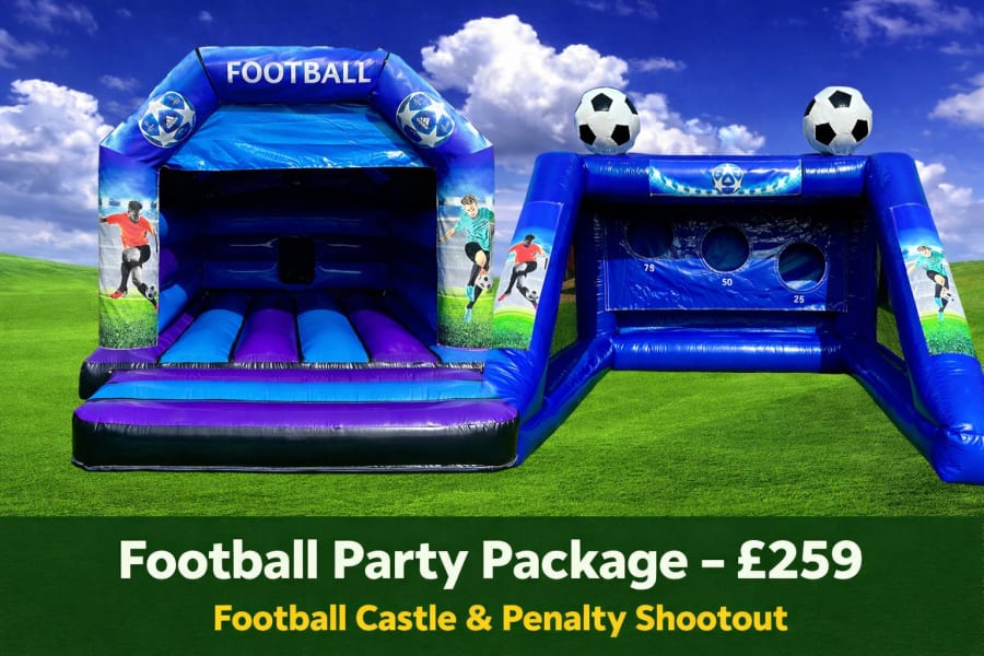 This combination gives children the best of both worlds — they can bounce and burn off energy on the inflatable, then take turns competing on the penalty shootout, keeping the party flowing and exciting.