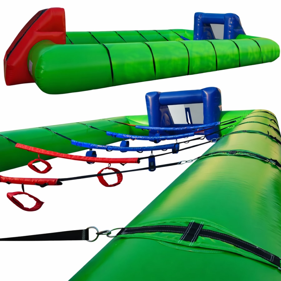 The Human Table Football Game is a giant inflatable version of the classic foosball game—where players take the place of the figures.