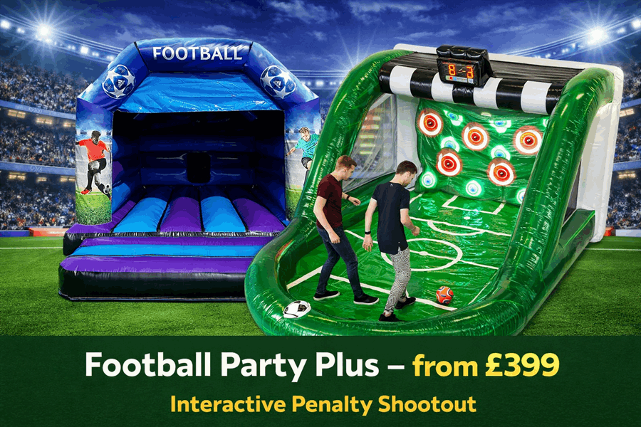 This premium package combines a football bouncy castle with our interactive digital penalty shootout, creating a fast-paced, competitive and hugely exciting football zone that keeps players entertained for the entire event.